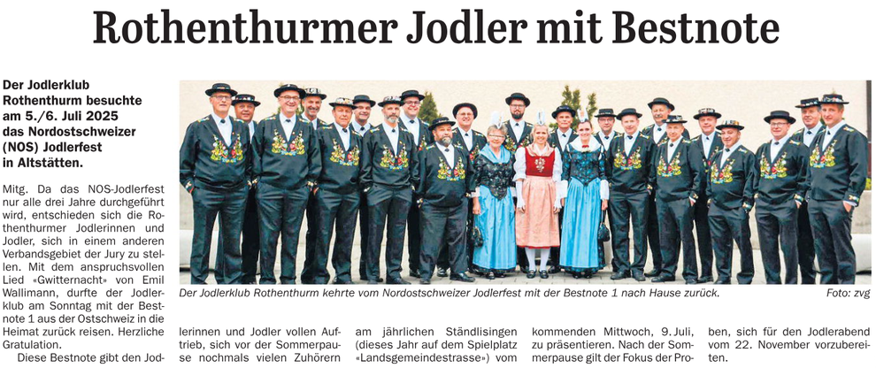 Erfolgreiches Jodlerfest für die Rothenthurmer Jodlerinnen und den Jodlerklub Rothenthurm!